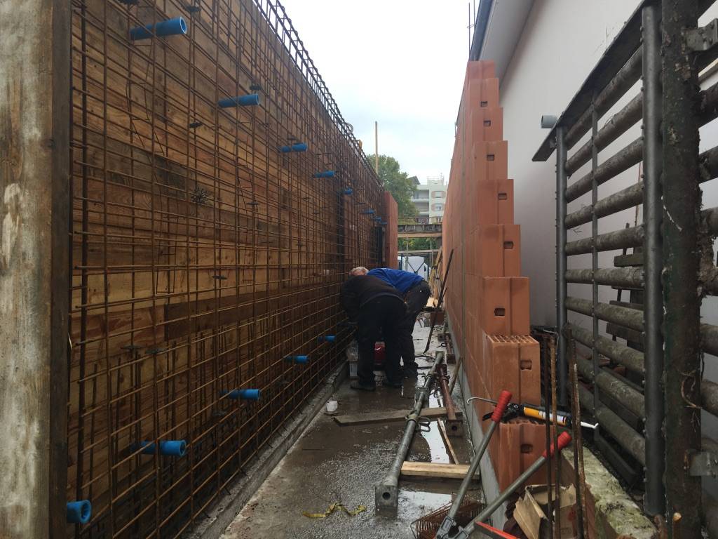 Côté rue, des bacs à fleur en béton ont été installés, ainsi que des câbles métalliques sur lesquels grimpent les plantes, afin de créer une façade végétalisée.