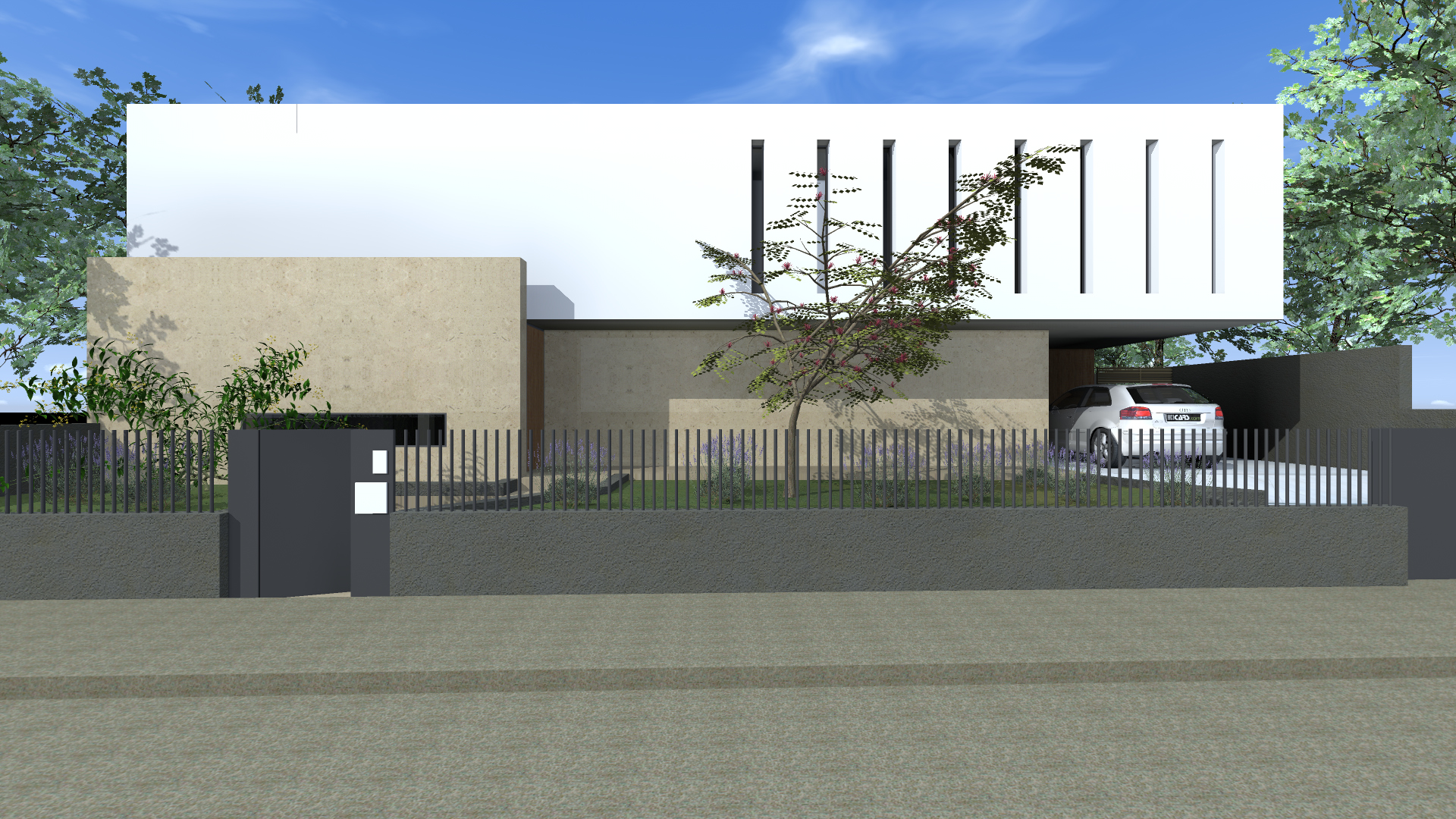 Nous avons dessiné une maison fermée sur rue et largement ouverte sur un jardin paysager avec piscine.Cette maison se compose en RDC d'un salon, salle à manger avec dans la continuité la cuisine.