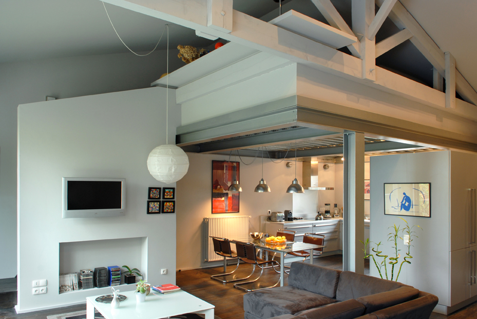 A l’étage, un coin bureau a été aménagé sur une mezzanine.