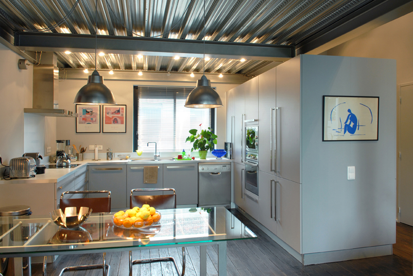 Elle est séparée de l’entrée par un espace de rangement – dans lequel a été intégré l'électroménager - qui fait office de cloison. Cette disposition permet à la lumière d’entrer dans toutes les pièces. Elles sont tournées vers le jardin paysagé et sa terrasse.