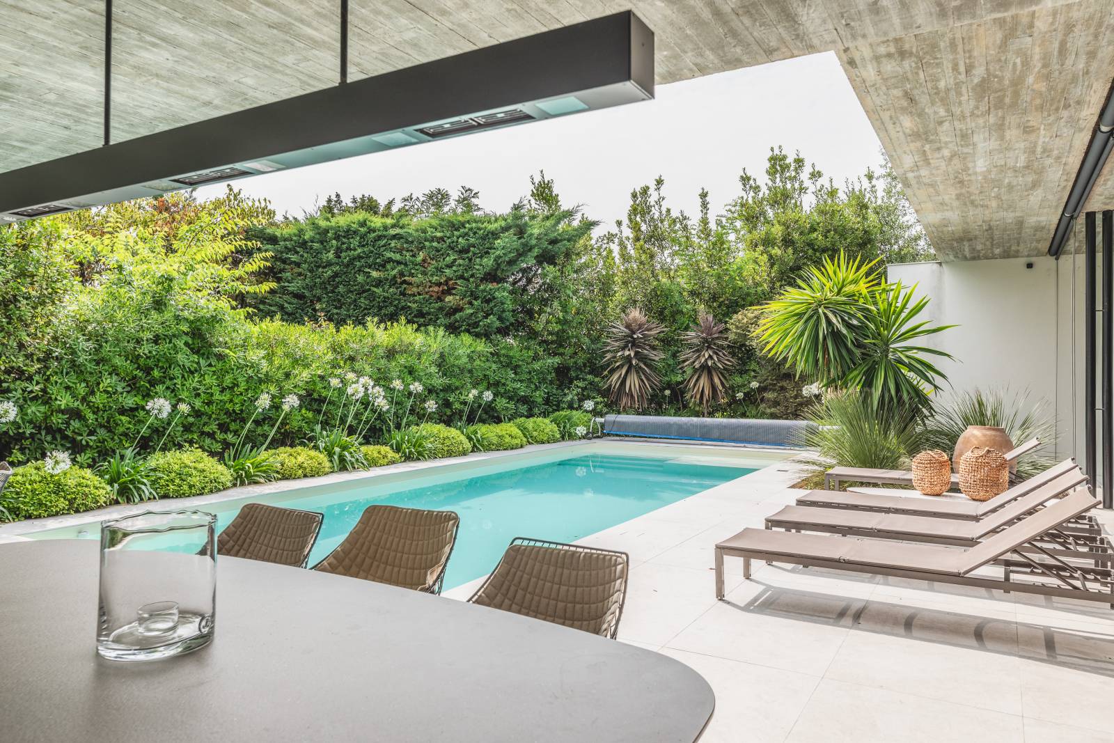 Nichée en périphérie bordelaise, cette villa de plain-pied de 265 m² séduit par son architecture épurée et ses volumes généreux. Dès l’entrée, l’espace se déploie avec fluidité grâce à une toiture en béton coffré, qui permet de limiter les murs porteurs et d’ouvrir largement les pièces à vivre.